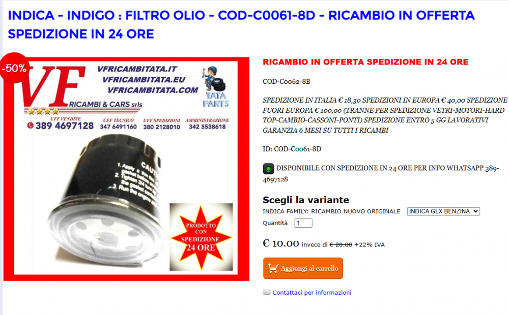 INDIGO - RICAMBI SCONTATI 24 H